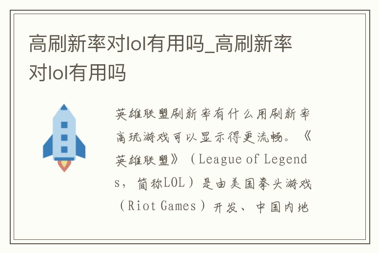 刷新率高玩游戲可以顯示得更流暢。《英雄聯盟》(League of Legends,簡稱LOL)是由美國拳頭游戲(Riot Games)開發、中國內地由騰訊游戲代理運營的英雄對戰MOBA競技網游。游戲里擁有數百個個性英雄,并擁有排位系統、符文系統等。