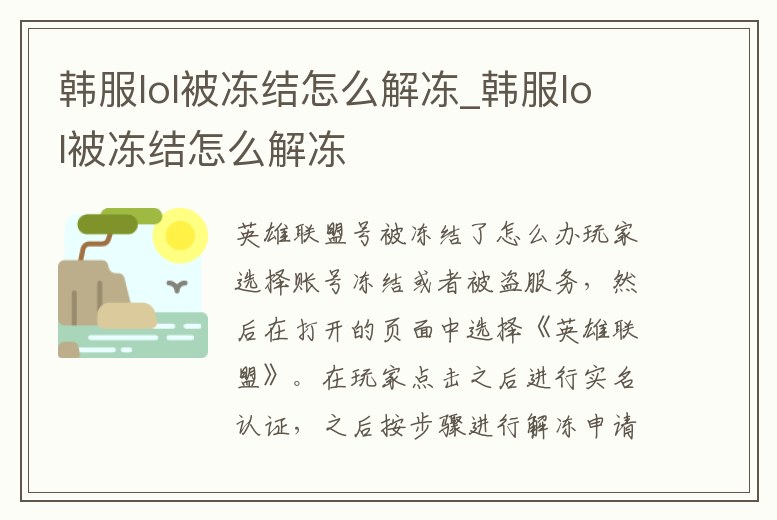 韓服lol被凍結怎么解凍_韓服lol被凍結怎么解凍