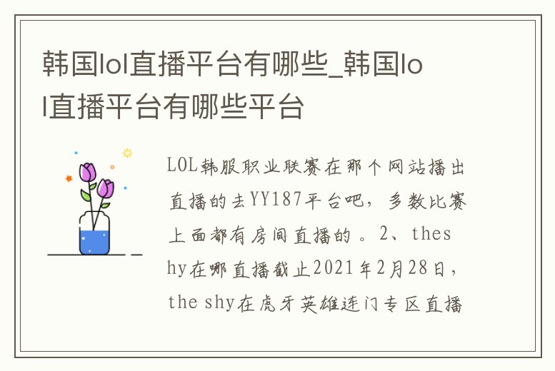 韓國lol直播平臺有哪些_韓國lol直播平臺有哪些平臺
