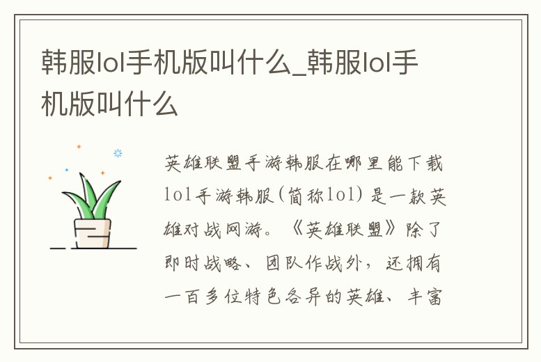 韓服lol手機(jī)版叫什么_韓服lol手機(jī)版叫什么