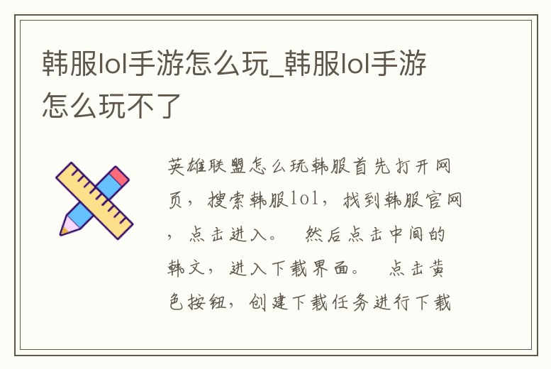 韓服lol手游怎么玩_韓服lol手游怎么玩不了