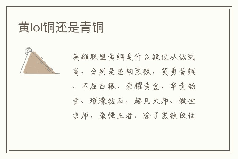 6、LOL青銅和黃銅是一樣的嗎,為什么有兩個