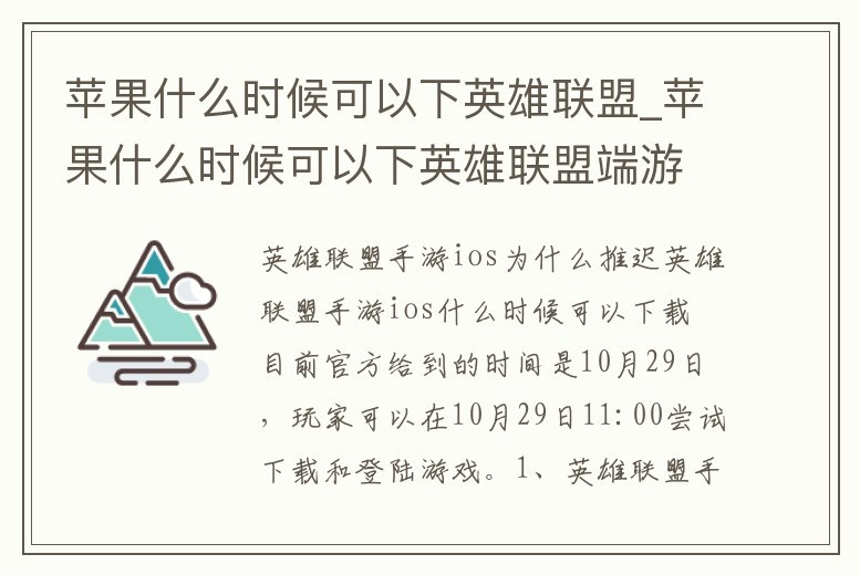 蘋果什么時候可以下英雄聯盟_蘋果什么時候可以下英雄聯盟端游