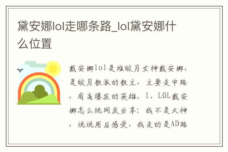 黛安娜lol走哪條路_lol黛安娜什么位置