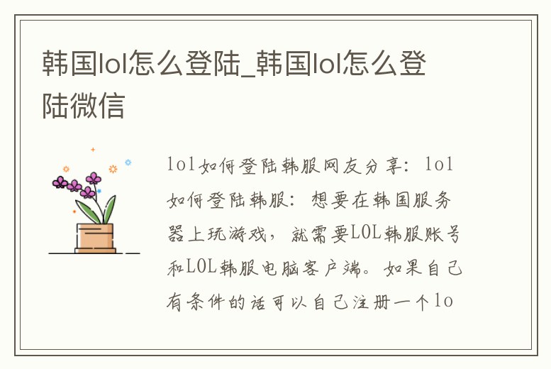 韓國lol怎么登陸_韓國lol怎么登陸微信