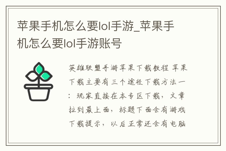 蘋果手機怎么要lol手游_蘋果手機怎么要lol手游賬號
