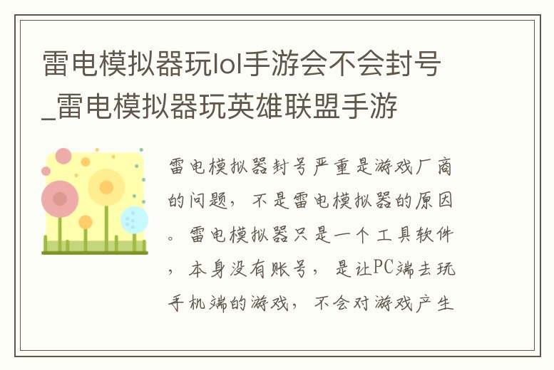 雷電模擬器玩lol手游會不會封號_雷電模擬器玩英雄聯盟手游