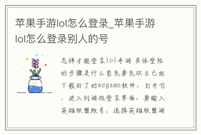 蘋果手游lol怎么登錄_蘋果手游lol怎么登錄別人的號