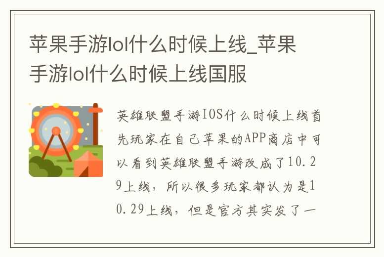 蘋果手游lol什么時候上線_蘋果手游lol什么時候上線國服
