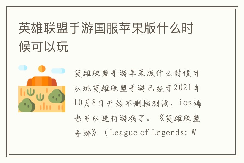 1、英雄聯盟手游蘋果版什么時候可以玩