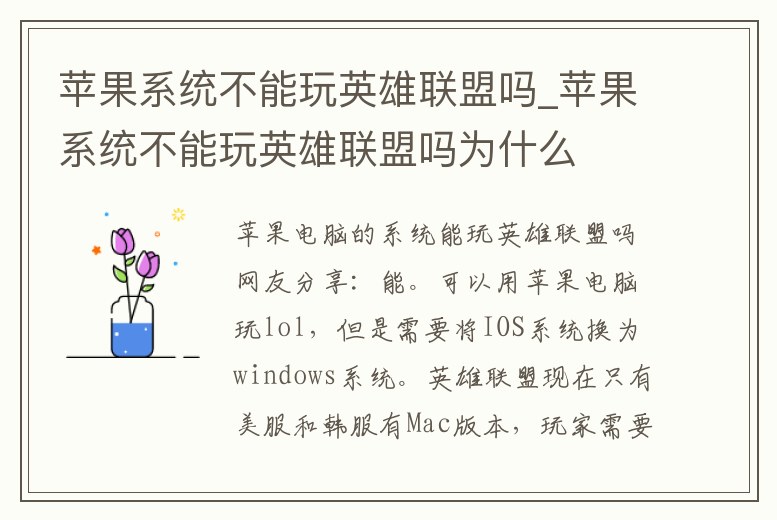 蘋果系統不能玩英雄聯盟嗎_蘋果系統不能玩英雄聯盟嗎為什么