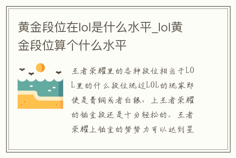 2、《英雄聯盟》黃金段位相當于《王者榮耀》什么段位