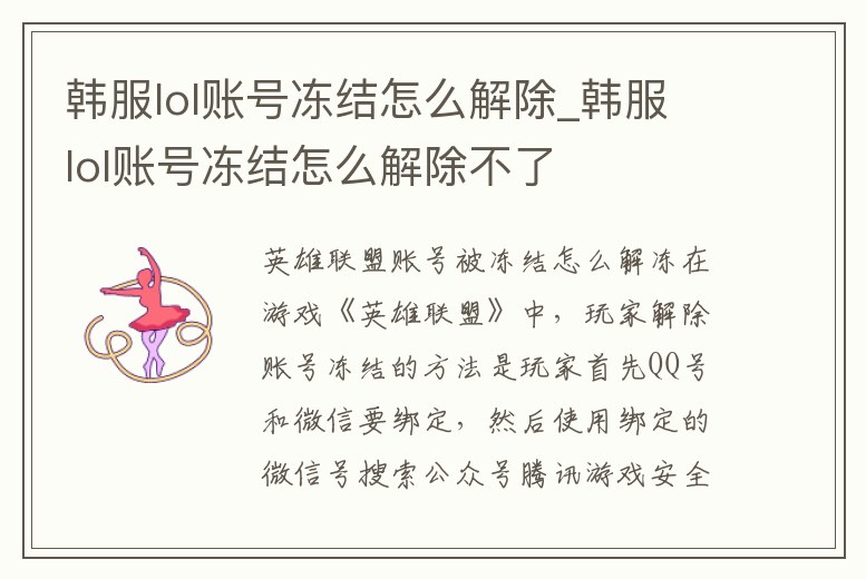 韓服lol賬號凍結怎么解除_韓服lol賬號凍結怎么解除不了