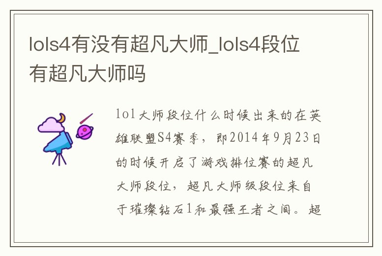 lols4有沒有超凡大師_lols4段位有超凡大師嗎