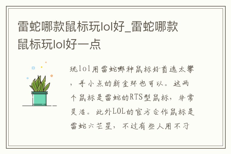 雷蛇哪款鼠標玩lol好_雷蛇哪款鼠標玩lol好一點