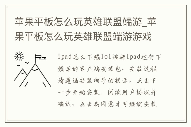 蘋果平板怎么玩英雄聯(lián)盟端游_蘋果平板怎么玩英雄聯(lián)盟端游游戲