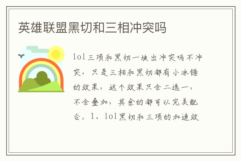 不沖突,只是三相和黑切都有小冰錘的效果,這個效果只會二選一,不會疊加,其余的都可以完美配合。