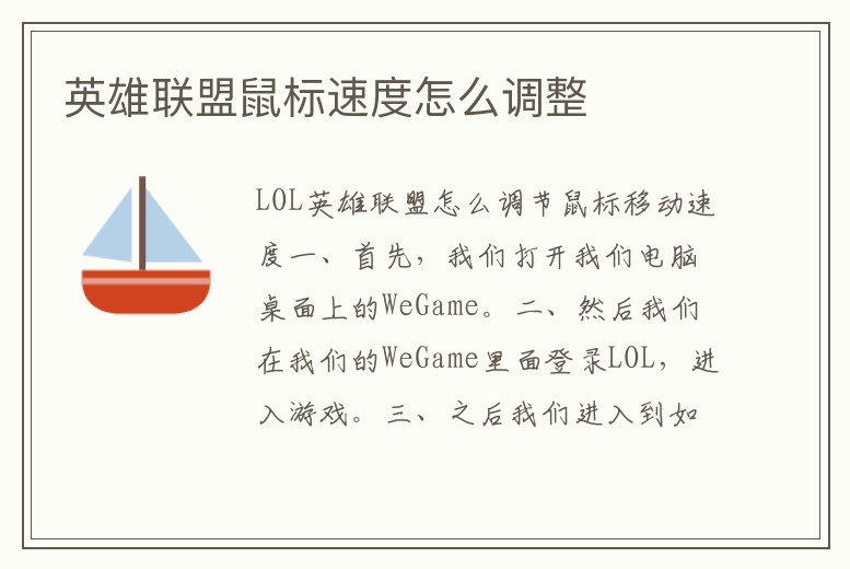 英雄聯盟鼠標速度怎么調整