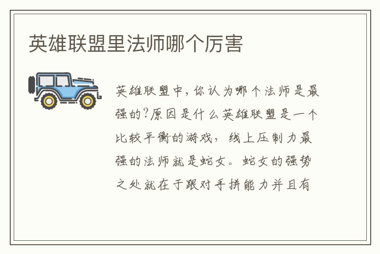 英雄聯盟里法師哪個厲害
