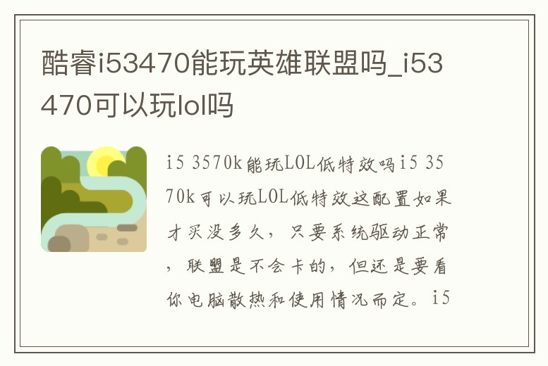 酷睿i53470能玩英雄聯盟嗎_i53470可以玩lol嗎