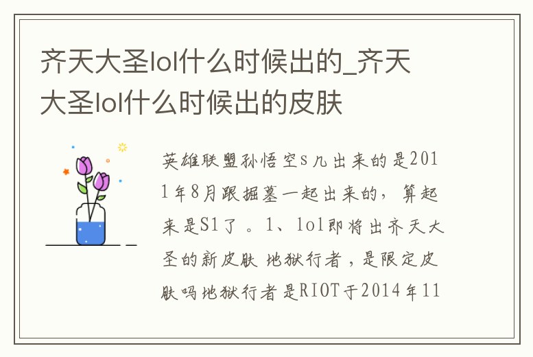 - 齊天大圣lol什么時(shí)候出的_齊天大圣lol什么時(shí)候出的皮膚