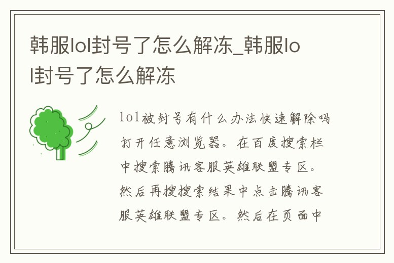 韓服lol封號了怎么解凍_韓服lol封號了怎么解凍
