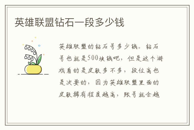 - 英雄聯(lián)盟鉆石一段多少錢
