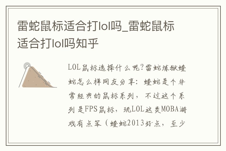 雷蛇鼠標適合打lol嗎_雷蛇鼠標適合打lol嗎知乎