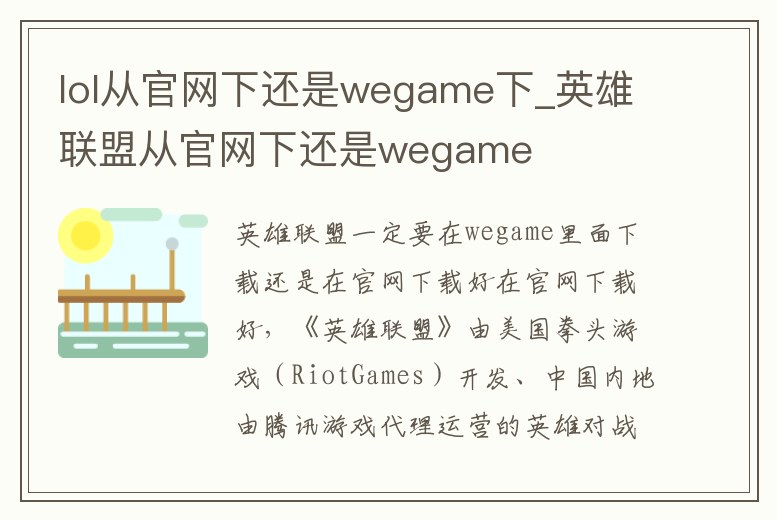 lol從官網(wǎng)下還是wegame下_英雄聯(lián)盟從官網(wǎng)下還是wegame