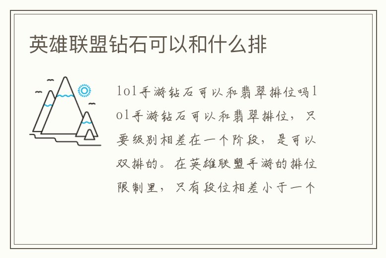 1、英雄聯盟手游鉆石可以和翡翠排位嗎