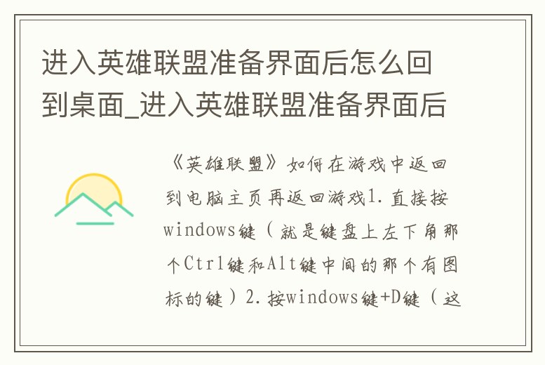- 進入英雄聯(lián)盟準備界面后怎么回到桌面_進入英雄聯(lián)盟準備界面后怎么回到桌面了