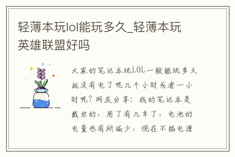 輕薄本玩lol能玩多久_輕薄本玩英雄聯(lián)盟好嗎