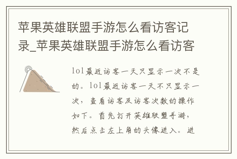 蘋果英雄聯盟手游怎么看訪客記錄_蘋果英雄聯盟手游怎么看訪客記錄時間