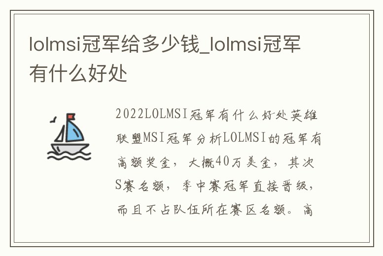 lolmsi冠軍給多少錢(qián)_lolmsi冠軍有什么好處