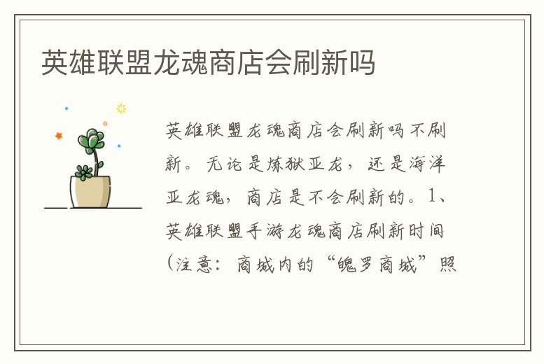 英雄聯(lián)盟龍魂商店會(huì)刷新嗎