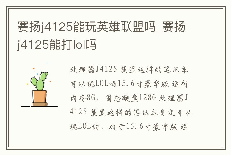 - 賽揚(yáng)j4125能玩英雄聯(lián)盟嗎_賽揚(yáng)j4125能打lol嗎