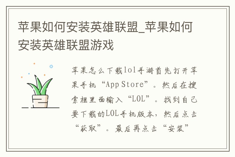 蘋果如何安裝英雄聯盟_蘋果如何安裝英雄聯盟游戲