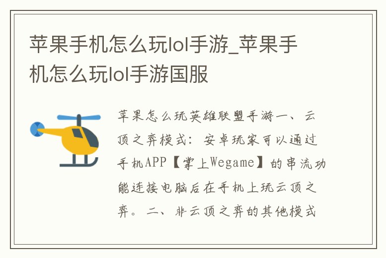 蘋果手機怎么玩lol手游_蘋果手機怎么玩lol手游國服