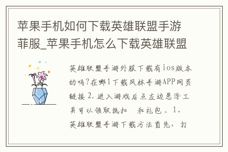 - 蘋果手機如何下載英雄聯(lián)盟手游菲服_蘋果手機怎么下載英雄聯(lián)盟外服
