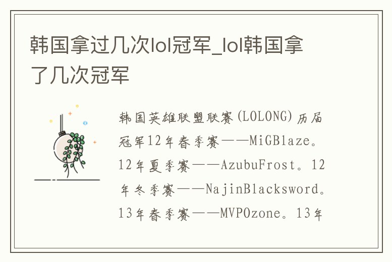 韓國拿過幾次lol冠軍_lol韓國拿了幾次冠軍