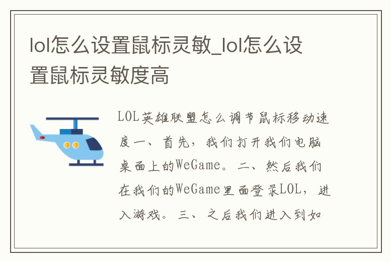 - lol怎么設(shè)置鼠標(biāo)靈敏_lol怎么設(shè)置鼠標(biāo)靈敏度高