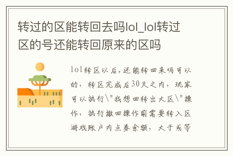 轉過的區能轉回去嗎lol_lol轉過區的號還能轉回原來的區嗎