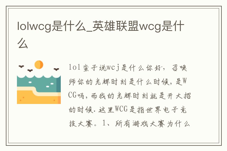 lolwcg是什么_英雄聯盟wcg是什么