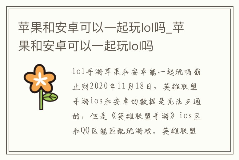 蘋果和安卓可以一起玩lol嗎_蘋果和安卓可以一起玩lol嗎