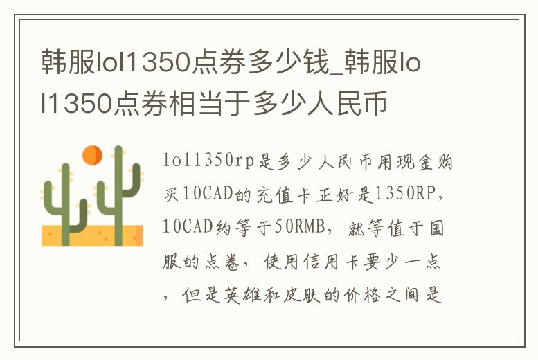 韓服lol1350點券多少錢_韓服lol1350點券相當于多少人民幣