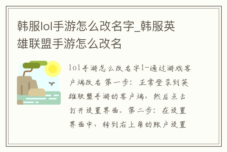 韓服lol手游怎么改名字_韓服英雄聯盟手游怎么改名