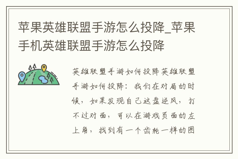 蘋果英雄聯盟手游怎么投降_蘋果手機英雄聯盟手游怎么投降