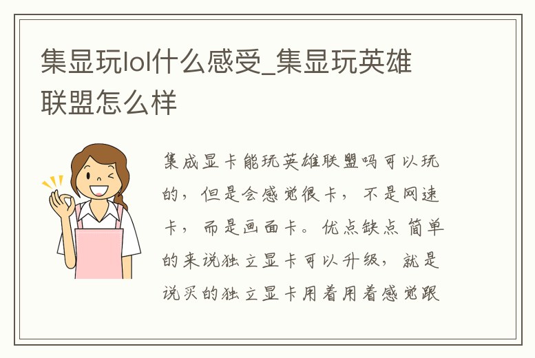 集顯玩lol什么感受_集顯玩英雄聯盟怎么樣