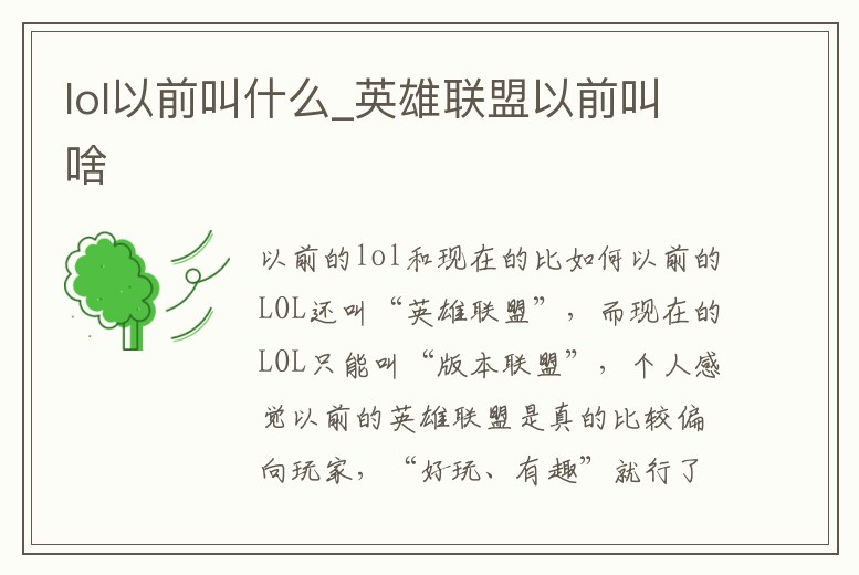 lol以前叫什么_英雄聯(lián)盟以前叫啥