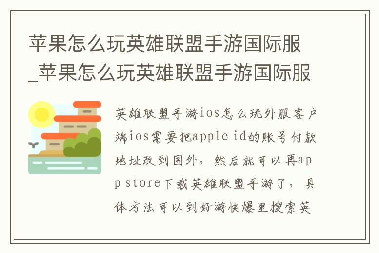 蘋果怎么玩英雄聯盟手游國際服_蘋果怎么玩英雄聯盟手游國際服的
